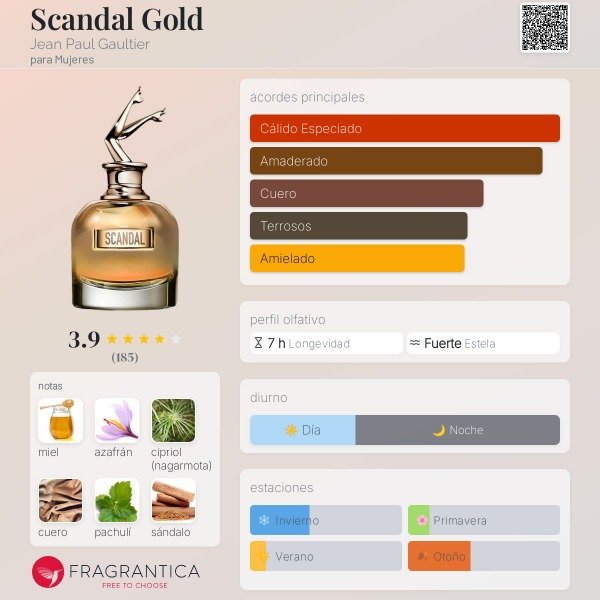 Scandal Gold de Jean Paul Gaultier es una de las ediciones más exclusivas y opulentas de la colección, lanzada originalmente para el mercado de Medio Oriente. Es un perfume que grita lujo y sofisticación árabe.