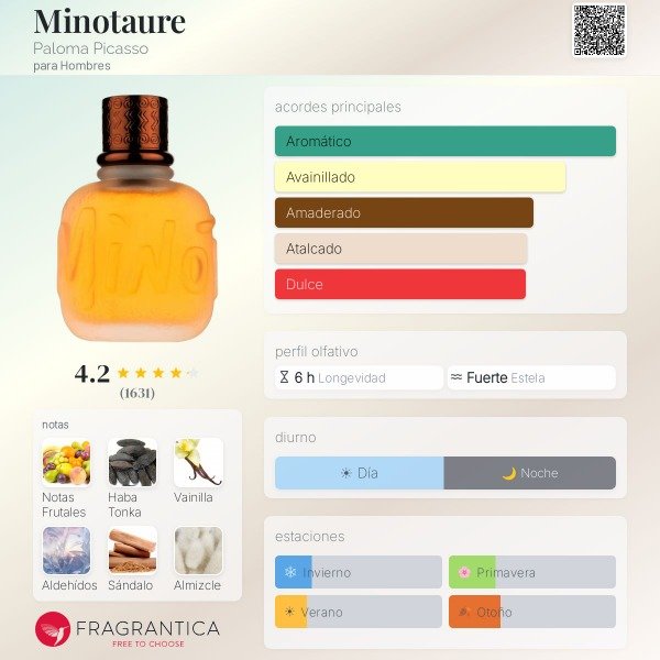 Minotaure Perfume masculino clásico, elegante y con mucha personalidad, lanzado en los 90. Combina notas frescas con un fondo cálido y dulce-amaderado, logrando un aroma sofisticado, distintivo y algo vintage.