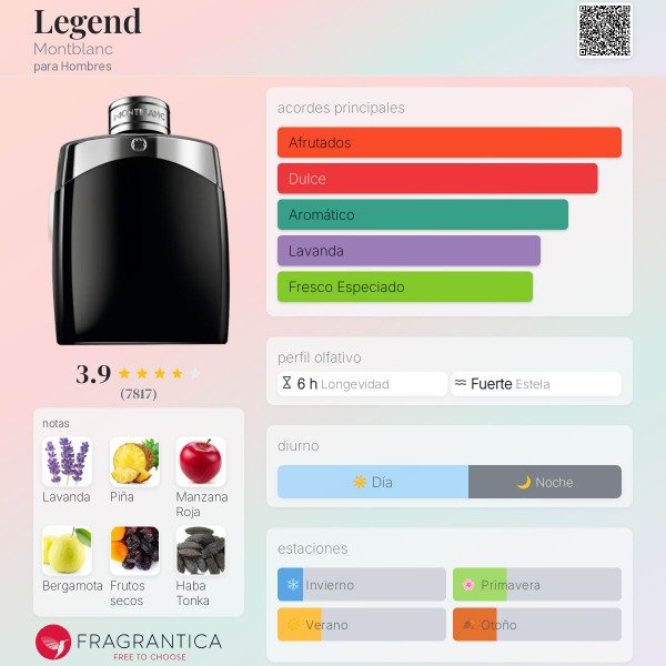 Montblanc Legend Fragancia masculina fresca, limpia y elegante, con un estilo clásico moderno. Es muy versátil y fácil de usar, ideal para el día a día.