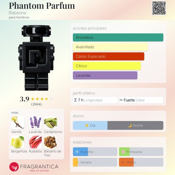 Phantom Parfum Una fragancia masculina intensa, moderna y adictiva, con un estilo dulce-aromático muy seductor. Es la versión más profunda de Phantom, con más cuerpo y un aire nocturno.